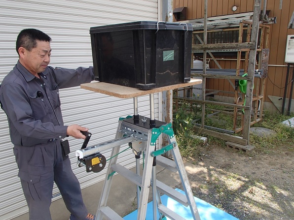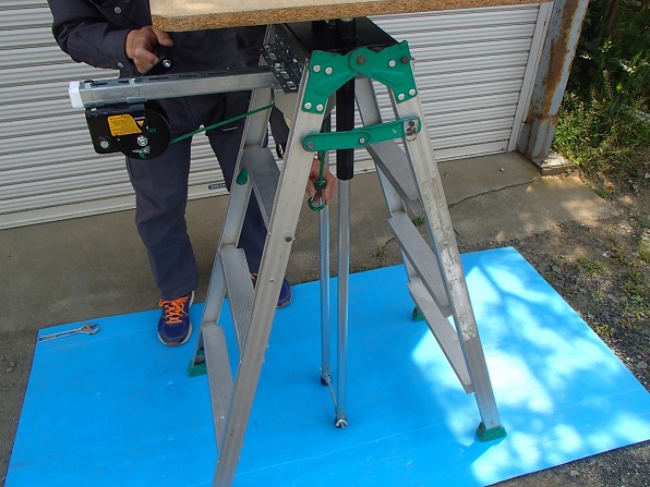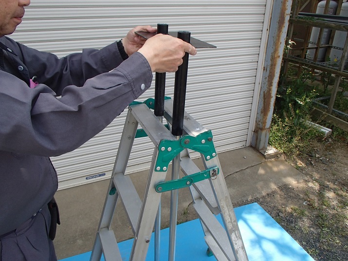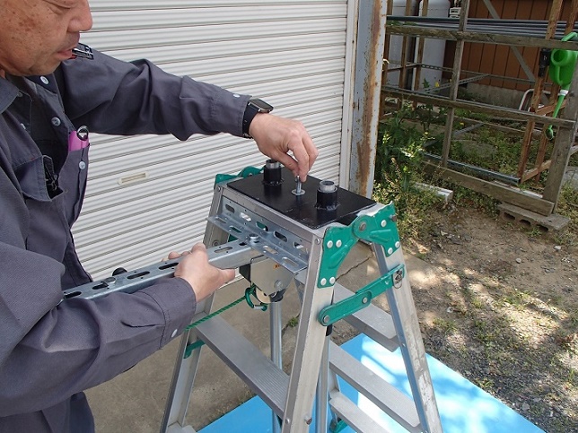 1.脚立を用意します。 |  2.スライドパイプの組立。 |
