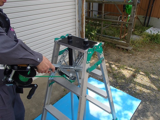 13.安全レバーのロック。 |  14.ハンドルを回して上昇。 |
