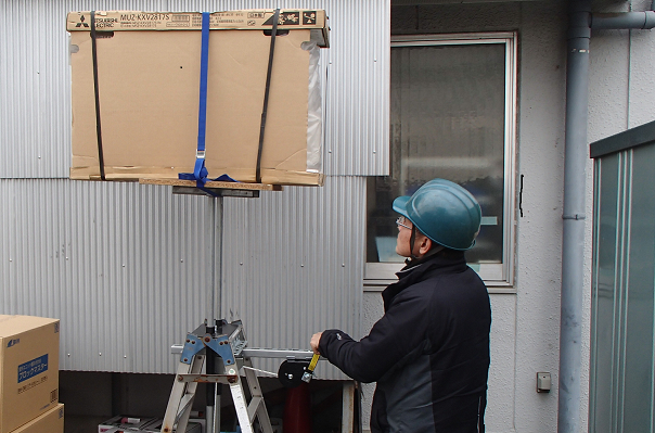 今まで苦手としていた天吊り型室外機の上げ下げも可能となりました。