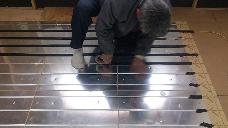 床下に直接冷媒配管を施工するため、暖房効率が良く、エアコン暖房の足元が寒いという欠点をカバーします。