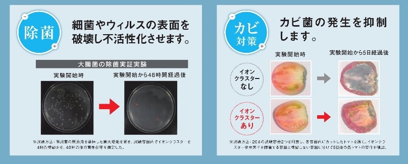弊社で採用しているイオンクラスターの詳細につきましてはこちらをご覧下さい。
