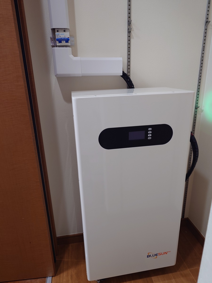 当社取扱いの蓄電池は、Bluesun Japanの製品で、容量14.3kwh。一世帯に必要とされる平均値13kwhを越えています。