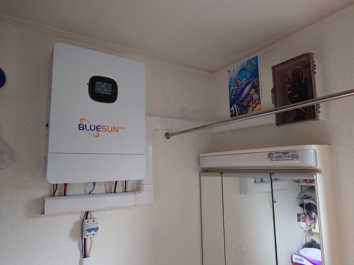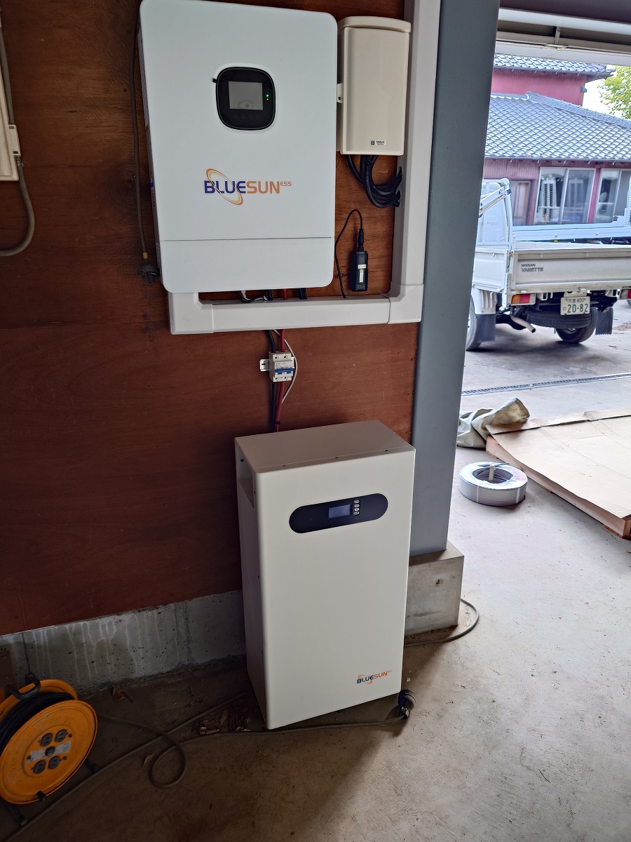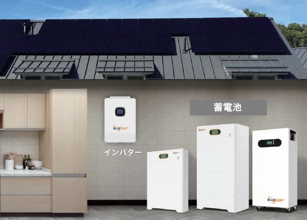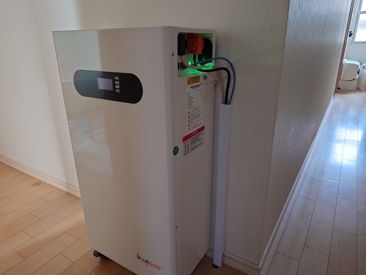 当社取扱いの蓄電池は、Bluesun Japanの製品で、容量14.3kwh。一世帯に必要とされる平均値13kwhを越えています。